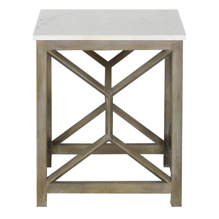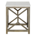 The Urban Port Agas Side End Table, 22 Inch Square White Genuine Marble Top, Sandblasted Washed Ash Gray Mango Wood Geometric Frame