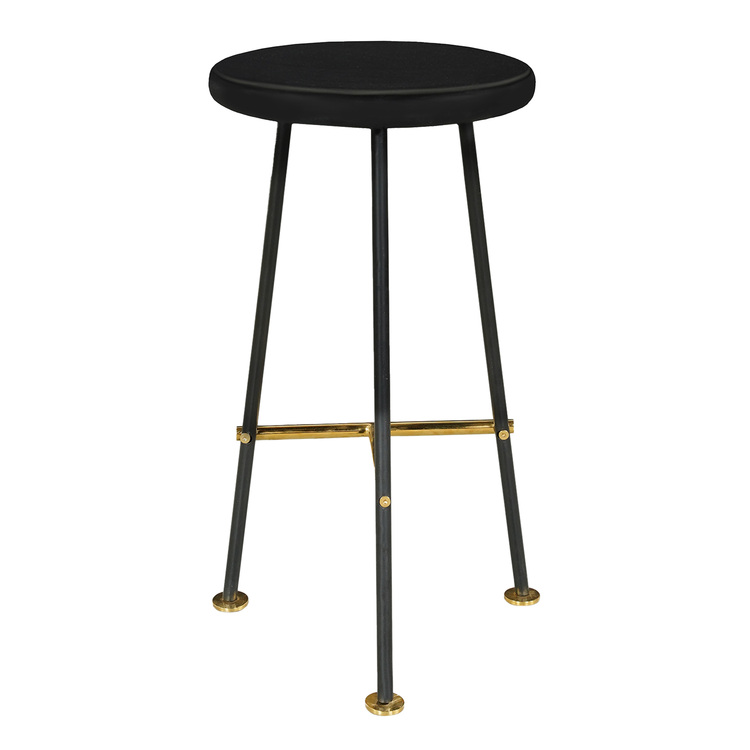 • The Urban Port Elira 24 Inch Backless Counter Barstool with Round Mango Wood Seat | Black Iron Legs | Gold Footrest image - 1
