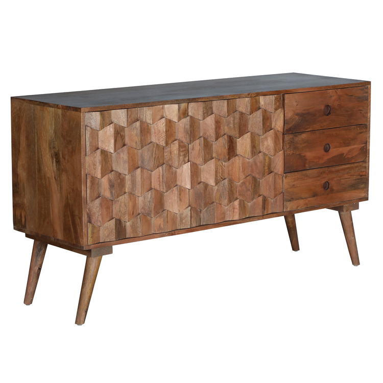 • The Urban Port Ero 55 Inch Sideboard Buffet Cabinet, 2 Honeycomb Inlaid Doors, Mango Wood, Natural Brown image - 1