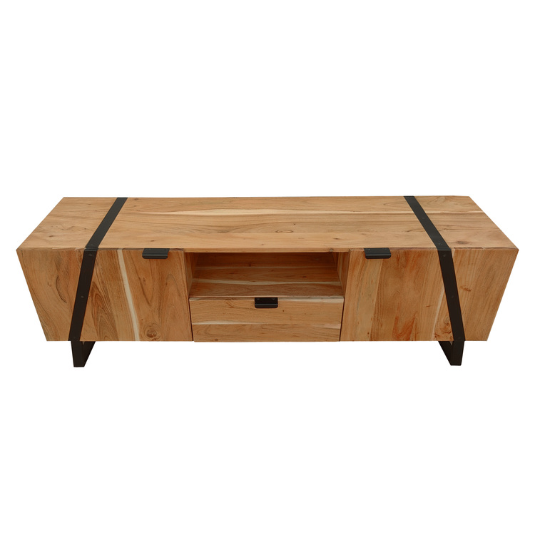 • The Urban Port Aza 59 Inch Handcrafted TV Console with Drawer Natural Brown Acacia Wood Cabinet image - 1