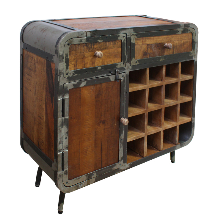 • The Urban Port Rustic Style 4 drawer and 2 Door TV Media Console Cabinet with Tubular Metal Legs, Brown and Gray image - 1