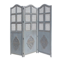 • The Urban Port Three Panel Wooden Room Divider with Traditional Carvings and Cutouts, Blue image - 1