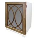 • Wooden Side Table with Lattice Pattern Mirrored Door Cabinet, White and Brown image - 1
