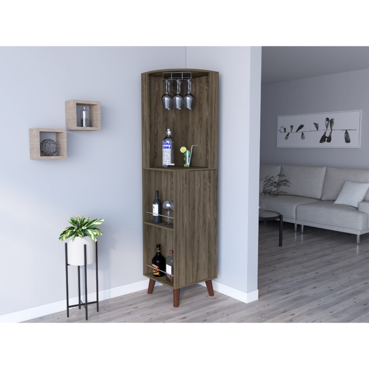 • We Have Furniture Corner Bar Cabinet - Dark Brown Wood Finish image - 1