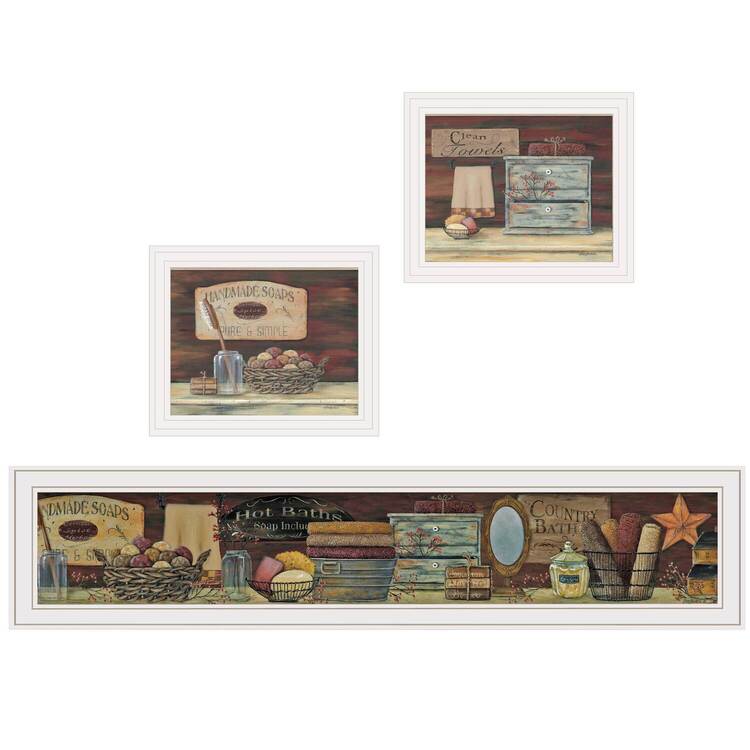 • Trendy Decor4U "COUNTRY BATH II" 3-Piece Vignette by Pam Britten, White Frame image - 1