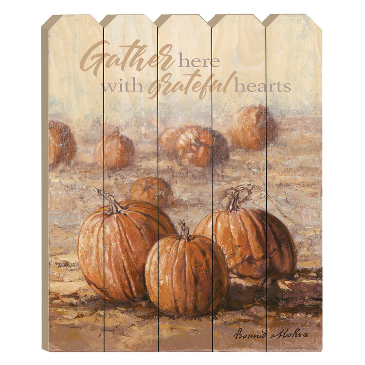 • Trendy Decor4U "Gather Here with Grateful Hearts" By Artisan Bonnie Mohr Printed on Wooden Pumpkin Wall Art image - 1