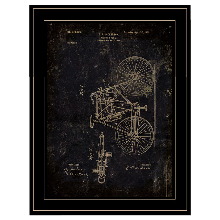 Trendy Decor4U "Motor Bike Patent" by Cloverfield & Co, Ready to Hang Framed Print, Black Frame