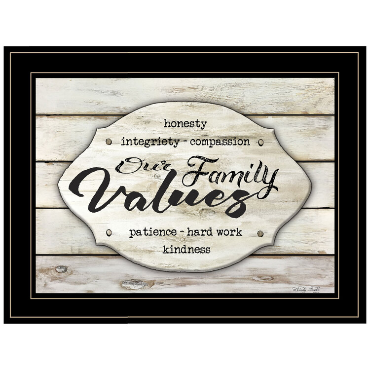 Trendy Decor4U "Our Family Values" by Cindy Jacobs, Ready to Hang Framed Print, Black Frame