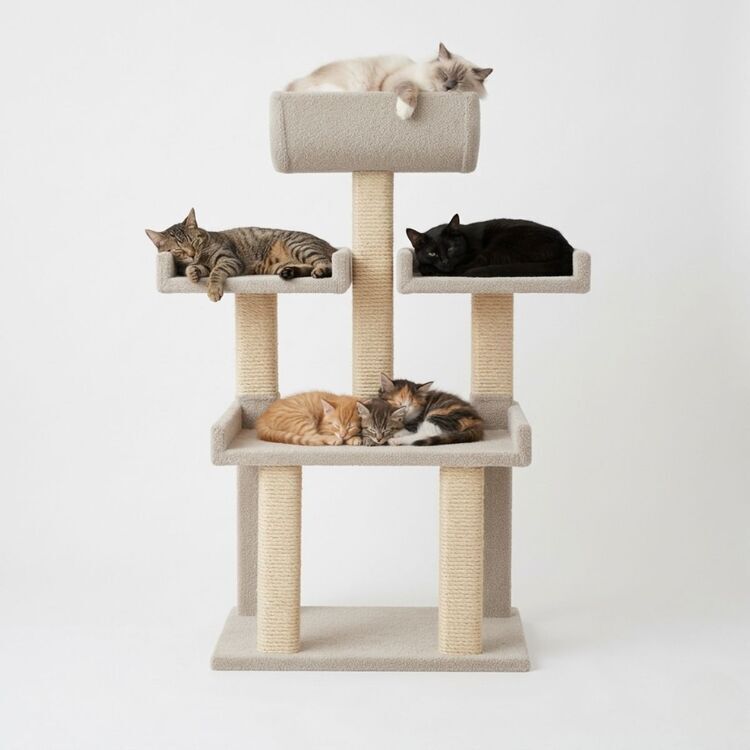 • Truva Bravara 56" Extra Large Cat Tree Tower for Big Cats - Heavy-Duty Multi-Level Design, USA Made image - 1