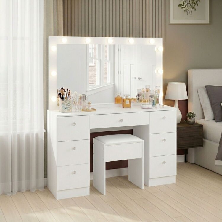 • Truva Lumina Celebrity-Style LED Makeup Vanity with Drawers & USB Charging - White Glam Set  image - 1