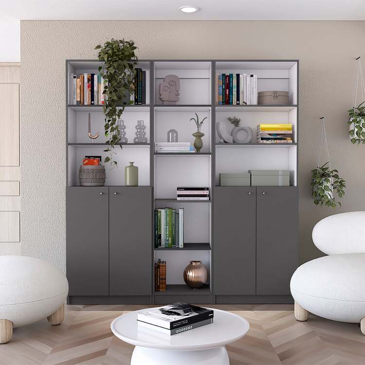 TUHOME Acres Living Room Set - 3 Piece Sofa & Bookcases - Matt Gray/White - Modern Furniture