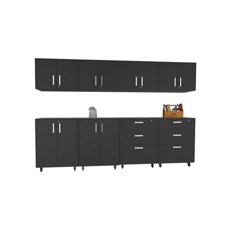 • TUHOME Burton 8-Piece Garage Storage Set - 4 Wall Cabinets, 2 Storage, 2 Drawer Cabinets - Black image - 1