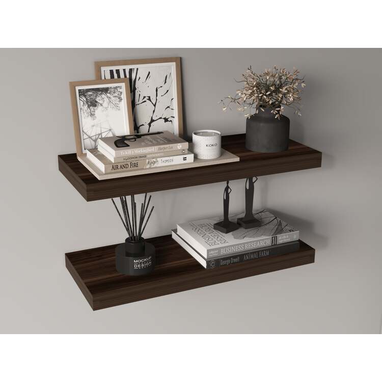• TUHOME Ecco 31.5" Wide Floating Shelves Set Of 2, Shelves For Wall Decor For Bedroom, Bathroom Storage Shelves, Book Shelves For Living Room, Dark Oak image - 1