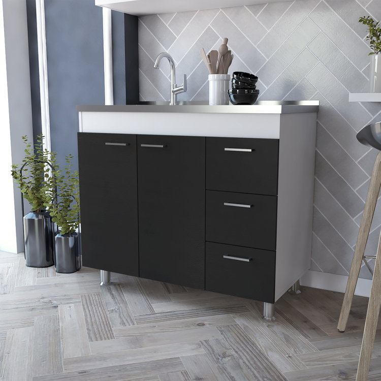 TUHOME Modern Kitchen Base Cabinet with Sink Hole & 3 Drawers