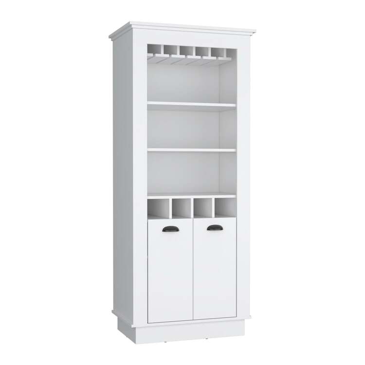 TUHOME Bar Cabinet - White Home Bar with Wine Rack & Glass Holder - Living Room Storage Cabinet
