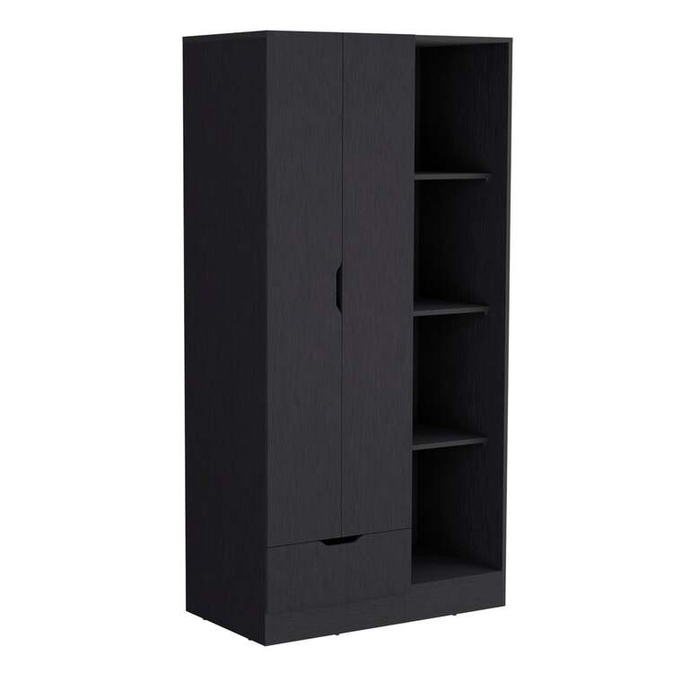 • TUHOME Memphis Armoire Wardrobe - 4 Shelves, 1 Drawer, Black - Bedroom Storage image - 1