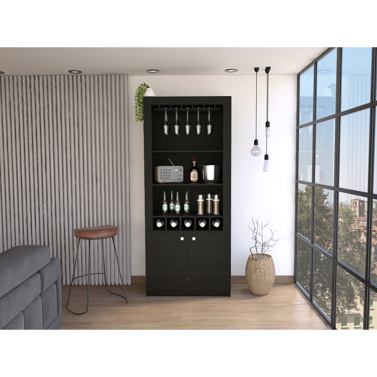 TUHOME Montenegro Bar Cabinet, Double Door Cabinet, Five Built-in Wine Rack, Three Shelves