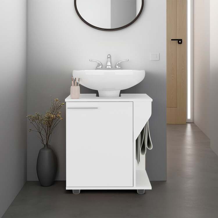 • TUHOME Phillips Under Sink Cabinet, Double Door Storage with Open Back for Pipes, Wide Unit, Freestanding Cabinet, White image - 1