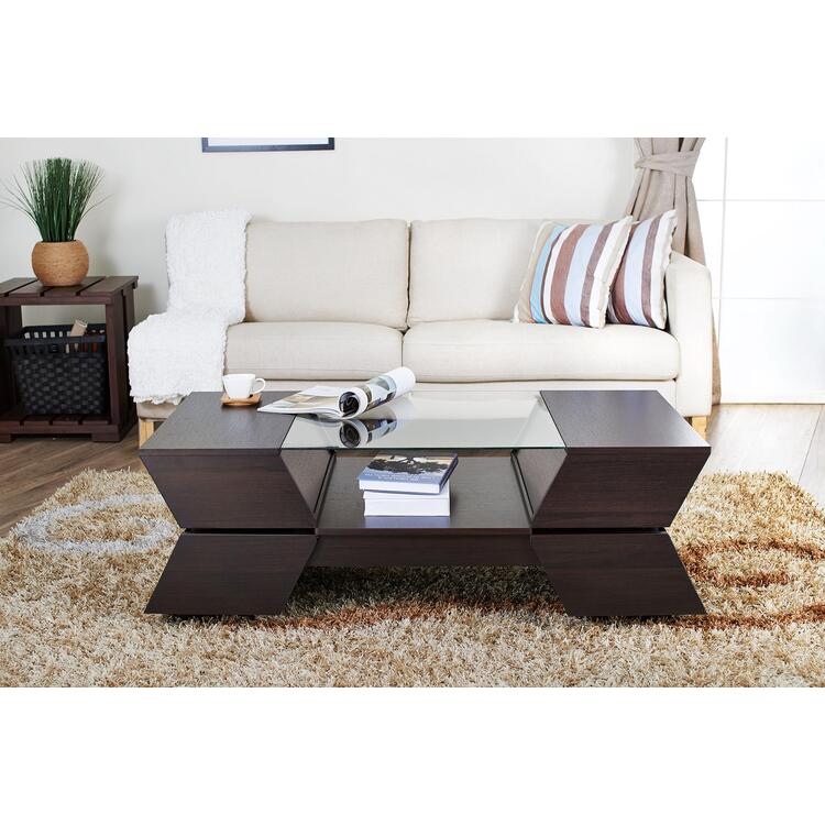• Glass Top Coffee Table Espresso MDF Wood Veneer Furniture - Furniture of America image - 1