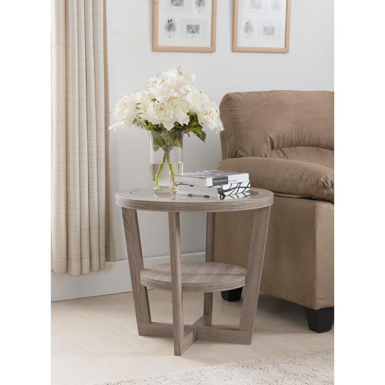 • Light Oak End Table Glass Top Round - Furniture of America image - 1