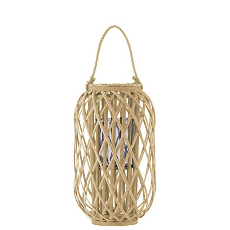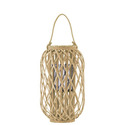 • Urban Trends Bamboo Round 19.50" Lantern with Braided Rope Lip and Handle, Lattice Design Body and Hurricane Candle Holder Natural Finish Tan image - 1