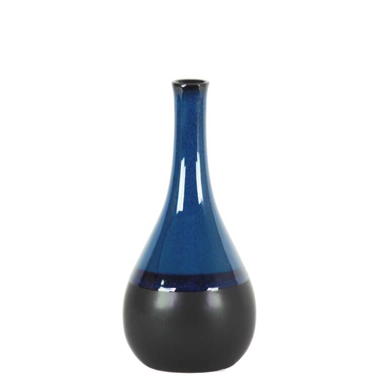 • Urban Trends Collection Ceramic Bellied Round Vase with Small Mouth, Long Neck and Black Banded Rim Bottom SM Gloss Finish Blue image - 1