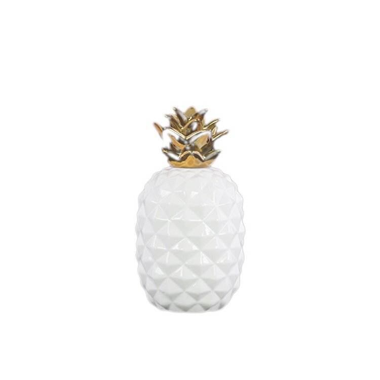 • UTC43151 Ceramic Pineapple Figurine with Gold Top SM Gloss Finish White image - 1