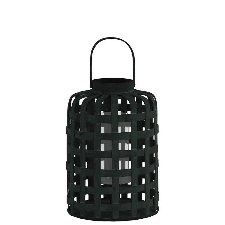 Wood Round Lantern with Latice Design and Handle, Black Finish - Urban Trends Collection