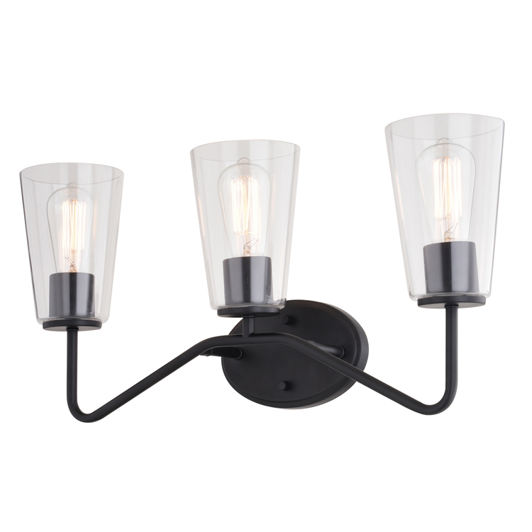 • Vaxcel Beverly 3 Light Matte Black Bathroom Vanity Fixture Clear Glass Shade, LED Compatible image - 1