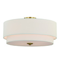 • Vaxcel Burnaby 20.5-in W Brass Mid-Century Modern Drum Semi Flush Mount Ceiling Light White Linen image - 1