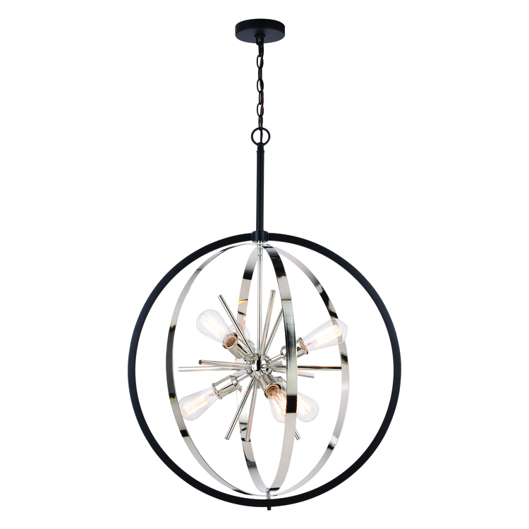 • Vaxcel Estelle 26.75-in Polished Nickel and Black Mid Century Modern 6 Light Globe Sputnik Hanging Ceiling Pendant Chandelier image - 1