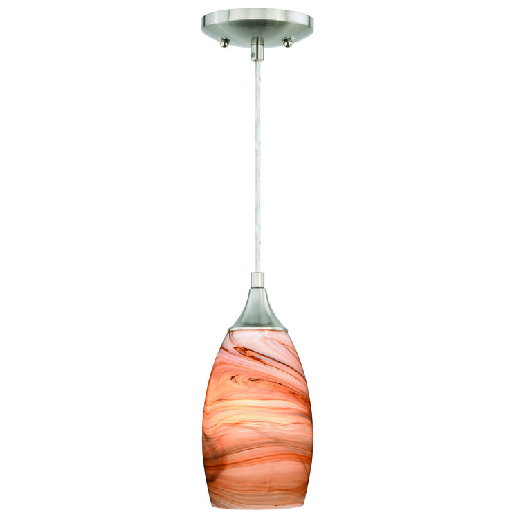 • Vaxcel Milano Satin Nickel Mini Pendant Ceiling Light Amber Swirl Glass image - 1