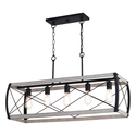 Vaxcel Montclare 5L Black and White Ash Wood Farmhouse Cage Linear Chandelier Island Pendant Light Fixture