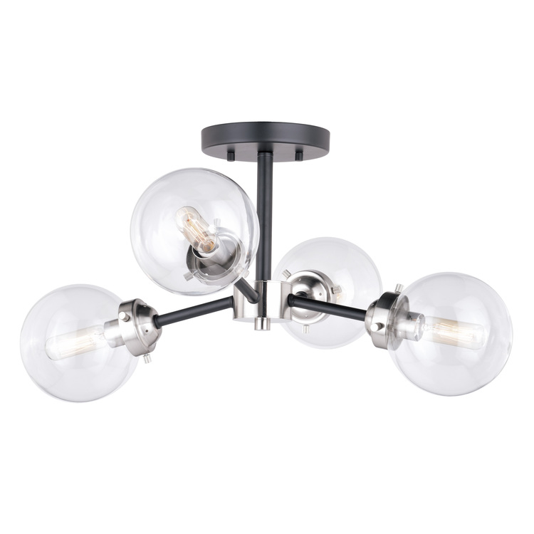 • Vaxcel Orbit 20-in W Nickel Industrial Sputnik Semi Flush Mount Ceiling Light Clear Glass image - 1