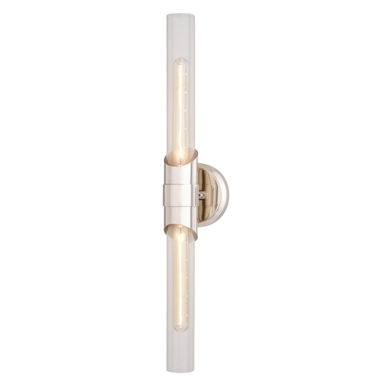 • Vaxcel Webster 2 Light LED Compatible Nickel Contemporary Bathroom Vanity Wall Sconce Fixture Clear Glass image - 1