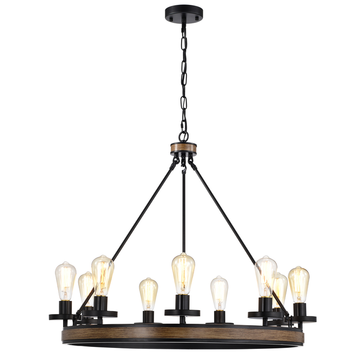 • Warehouse of Tiffany 9-Light Farmhouse Chandelier - Matte Black & Wood Grain image - 1