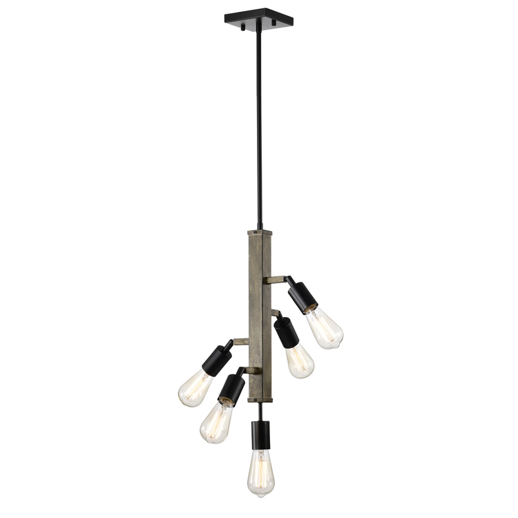 Warehouse of Tiffany Abrome Matte Black and Wood Grain Finish 5-Light Pendant Ceiling Light