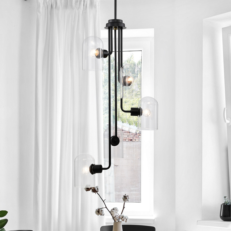 • Warehouse of Tiffany Modern 19" Matte Black Chandelier - 5 Light Globe Design image - 1