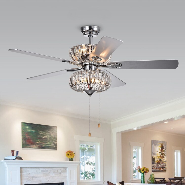 • Warehouse of Tiffany Chrome Crystal Ceiling Fan - 6-Light 52 Inch image - 1