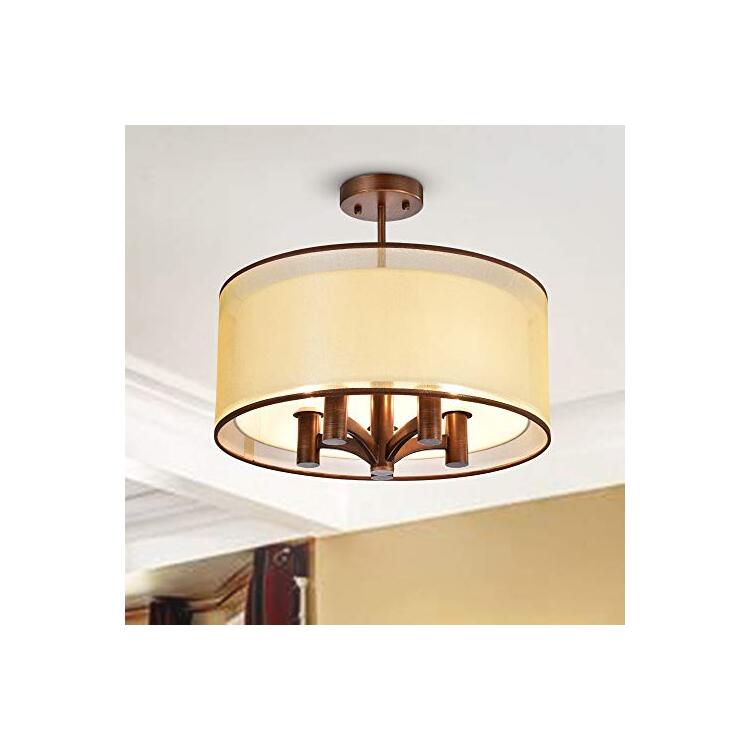 • Warehouse of Tiffany Modern 5-Light Flush Mount Ceiling Light - Copper & Fabric Shade image - 1