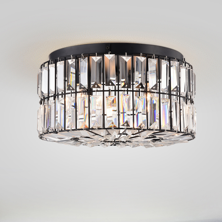 • Warehouse of Tiffany Black 4-Light Flush Mount Chandelier with Crystals image - 1