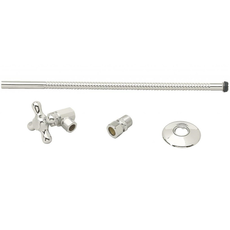 • Toilet Kit with Stop and Corrugated Riser - Cross Handle Polished Nickel - Westbrass image - 1