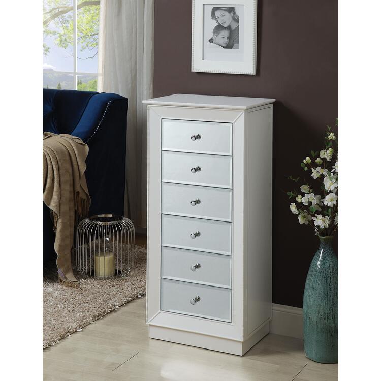 Whether you have a growing collection of rings, bracelets, or earrings, our white standing jewelry armoires provide ample space. Ideal for compact bedrooms or walk-in closets, they offer a clutter-free way to keep your accessories organized and easily accessible.