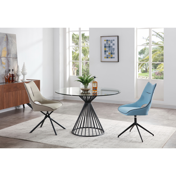 • Modern Glass Dining Table 10mm Thick Tempered Top Matte Black Iron Base - Whiteline Modern Living image - 1