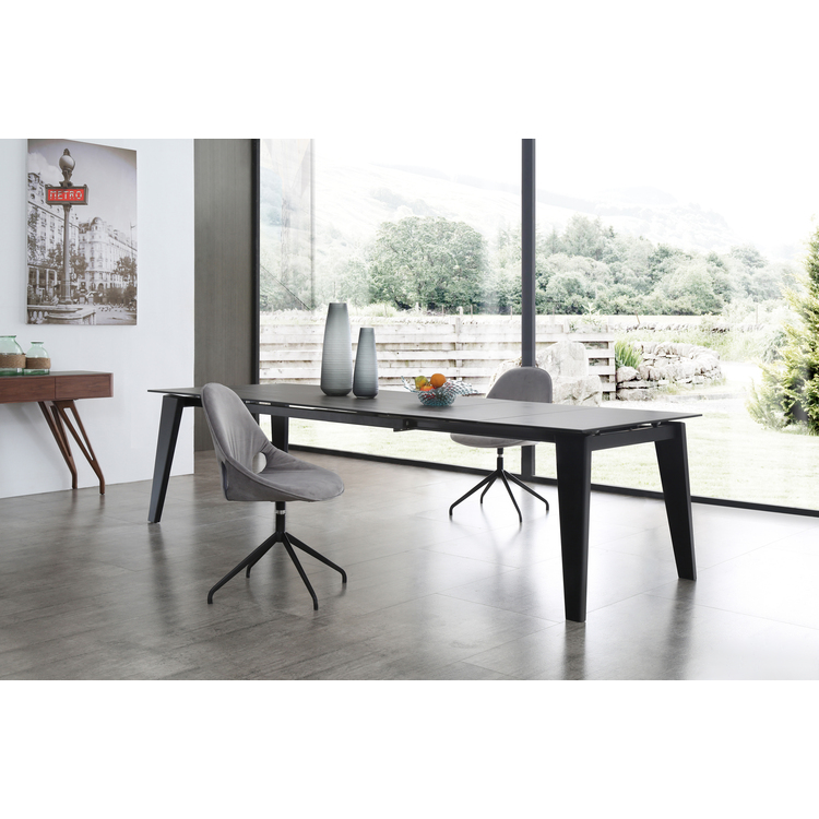 • Whiteline Modern Living Extendable Dining Table - Glass & Ceramic Top - Black Steel image - 1