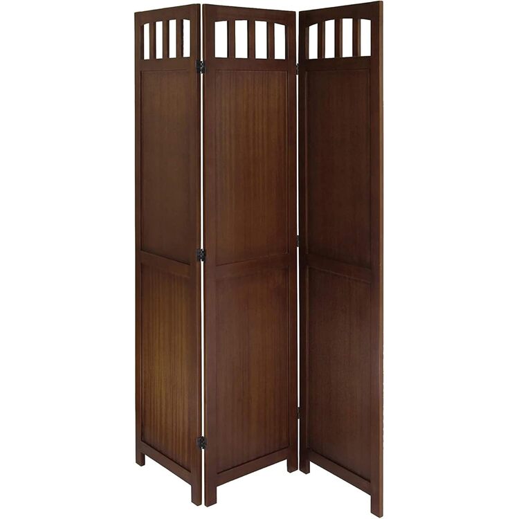 Dark Wood Walnut Room Divider 3-Panel Folding Screen - Winsome Wood