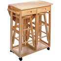 Space Saving Solid Wood Dining Set with Expandable Drop Leaf & Storage