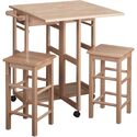 • 3-Piece Suzanne Space Saver Dining Set, Drop Leaf Table & 2 Stools - Teak & Natural image - 1