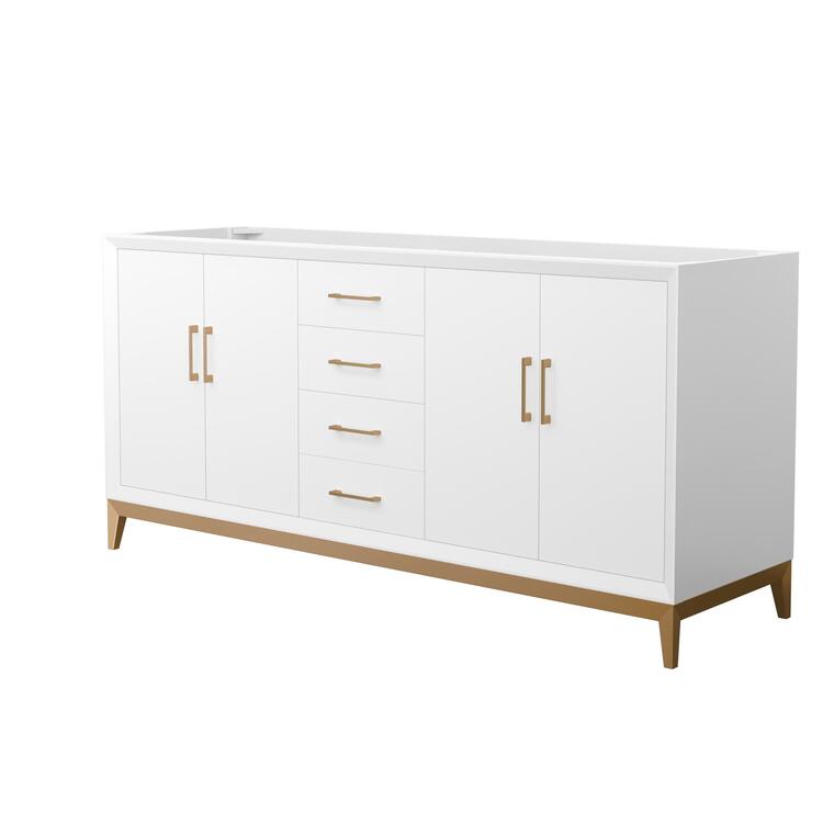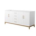 Wyndham Collection Amici 72 Inch Double Bathroom Vanity in White, No Countertop, No Sink, Satin Bronze Trim