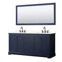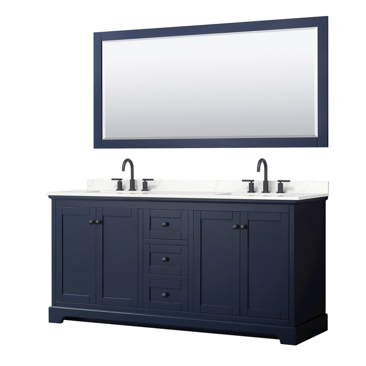 • Wyndham Collection Avery 72 Inch Double Bathroom Vanity in Dark Blue, Giotto Quartz Countertop, Undermount Square Sinks (3-Hole), Matte Black Trim, 70 Inch Mirror image - 1